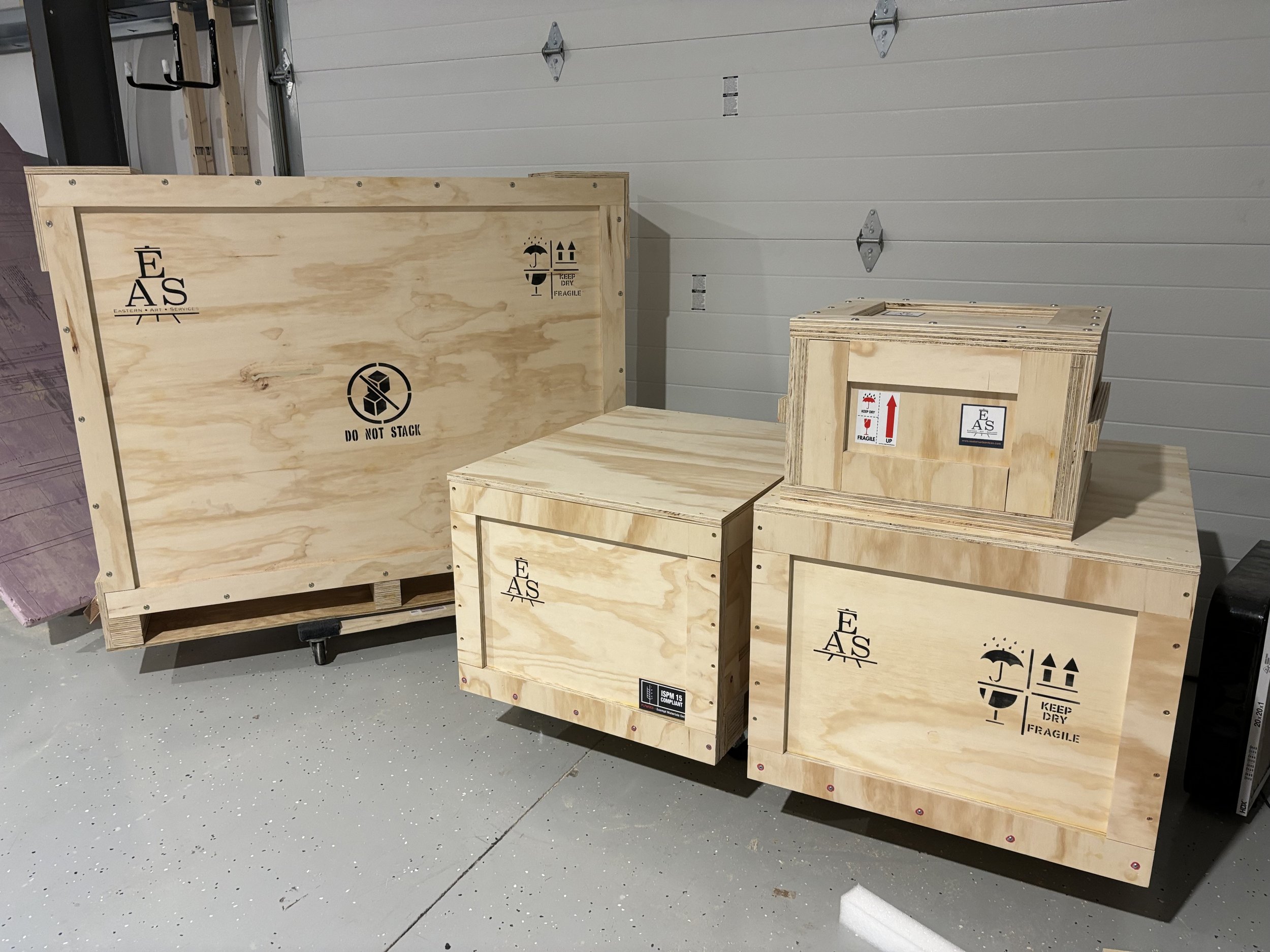 EAS also offers custom crating solutions. We can construct high-quality crates that are carefully crafted to fit your items, whether they are being shipped, stored or transported to a museum. Our custom crates are constructed from high-quality plywood and can be custom made to suit your art piece.
